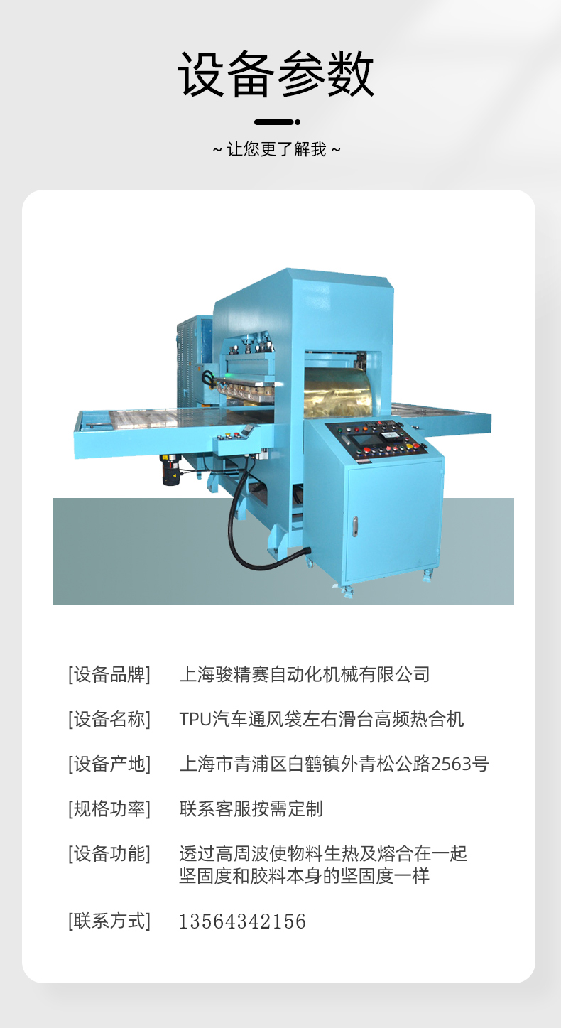 TPU汽車通風袋高頻熱合機 谘(zī)詢熱線:+8613564342156 在線谘詢 產品詳細 本信息鏈接地址:/gaopinji/417.html 標簽: 相關(guān)推薦(jiàn): 上(shàng)一篇:PVC沼氣池(chí)軌道式高頻熱(rè)合機 下一篇:TPU冷敷理療水囊高頻機 用手機看 拍下二維碼,信息隨身看 試試用手機掃一掃, 在你手機上繼續觀看此頁麵。