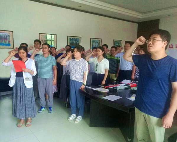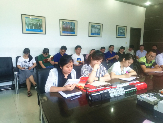 2018年6月28日下午,中共山東泰開箱(xiāng)變有限公司黨支部重溫(wēn)“入黨誓詞”、“不忘初心跟黨走”為(wéi)主題的學習十九大報告(gào)活動,隆重慶祝黨的97歲華誕。